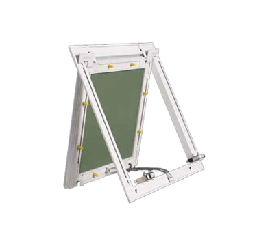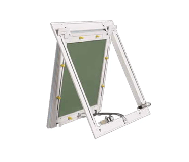 We provides access panels with plasterboard inlay, circumferential rubber lip seal, hidden snap locks, and self-adjusting safety catch arms that are moisture- and mold-resistant, fire-resistant, heavy-duty and smoke control for various environments.